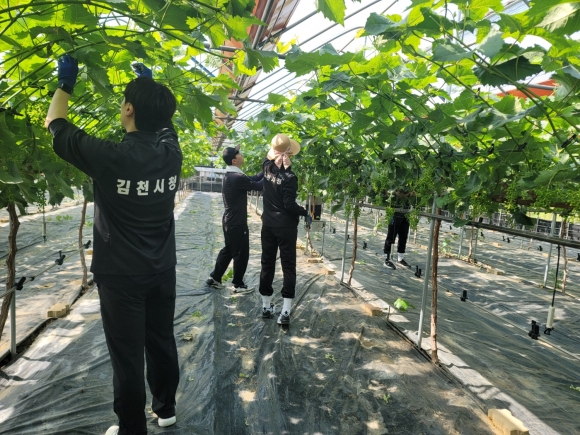 김천시청 실업팀, 포도 농가 찾아 일손 돕기에 구슬땀