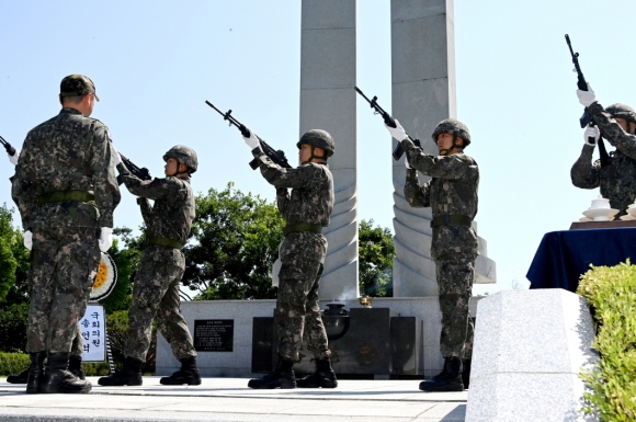 특히, 이번 추념식의 헌시는 「2022년 김천시 추모헌시 시민공모전」에서 최우수 작품으로 입상한 김덕희(삼락동) 님의 “삼산이수를 밝힌 호국영령들에게”를 정미라 주무관이 낭독해 의미를 더했다.