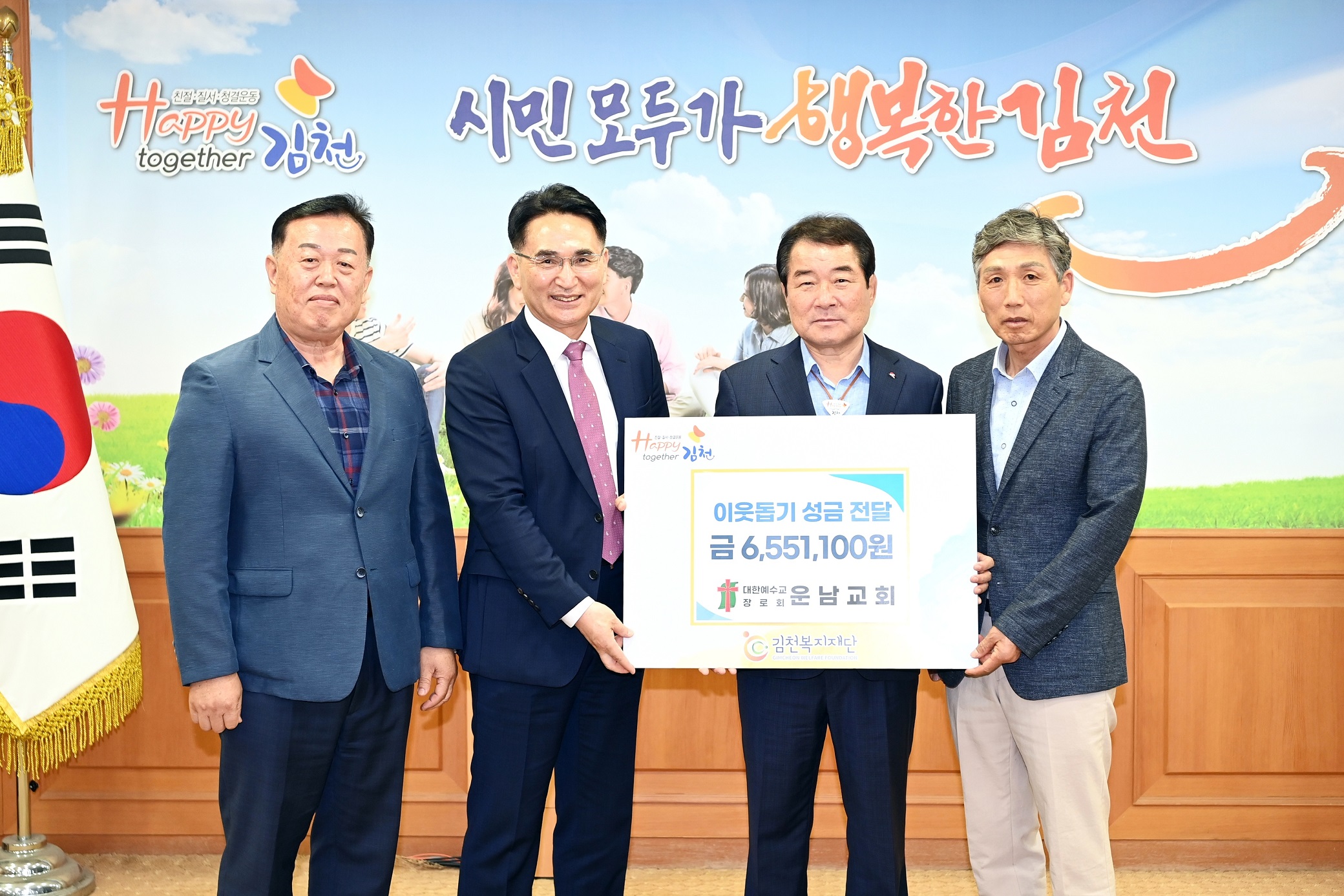 | 김천복지재단(이사장 김충섭)에서는 6월 9일 운남교회(담임목사 장영운)로부터 성금 6,551,100원을 전달받았다고 밝혔다.