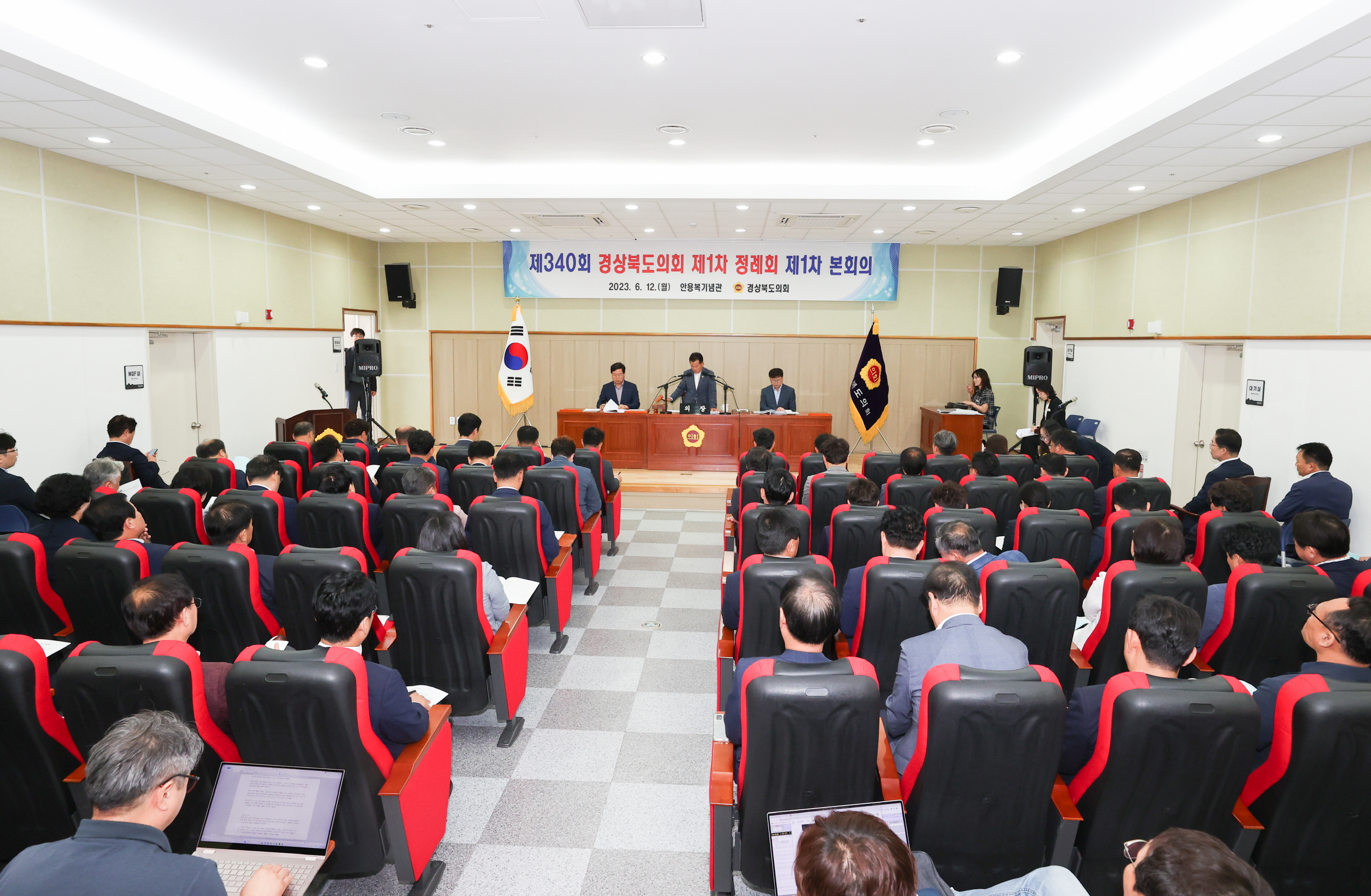 | 경상북도의회(의장 배한철)는 6월 12일 제340회 제1차 정례회 제1차 본회의를 울릉군 현지 안용복기념관에서 배한철 의장을 비롯해 도의원 및 이철우 도지사, 임종식 교육감 및 집행부 공무원, 취재 기자단 등 170여명이 참석한 가운데 개최했다.