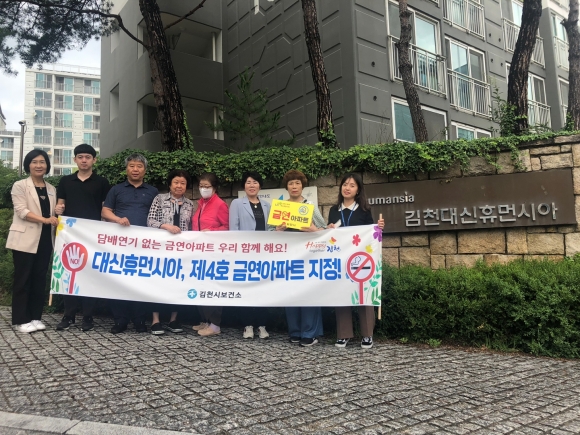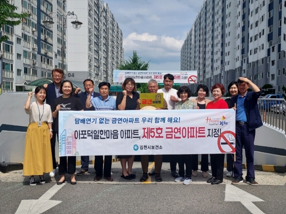 | 김천시보건소는 간접흡연의 해로운 환경으로부터 시민의 건강을 보호하고자 지난 6월 15일 김천대신휴먼시아, 아포덕일한마음아파트를 금연 아파트로 지정하고 현판식을 했다.