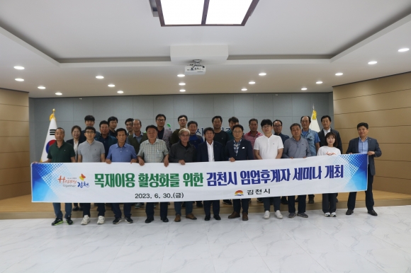 | 김천시 산림녹지과는 지난 6월 30일 김천시 산림조합에서 목재 이용 활성화를 위한 임업후계자 세미나를 개최했다.