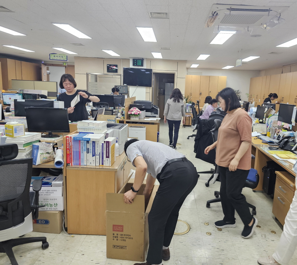 지난달 29일 복지기획과 20여 명의 직원이 동참하여 본인이 사용하는 최소한의 물품만 남기고 사무실 내 필요 없거나 오랫동안 사용하지 않는 물품을 선별했으며, 쓸 수 없는 물품은 분리배출하고 사용할 수 있는 물품은 한곳에 모아 직원들과 공유하고 나누는 시간을 가졌다.