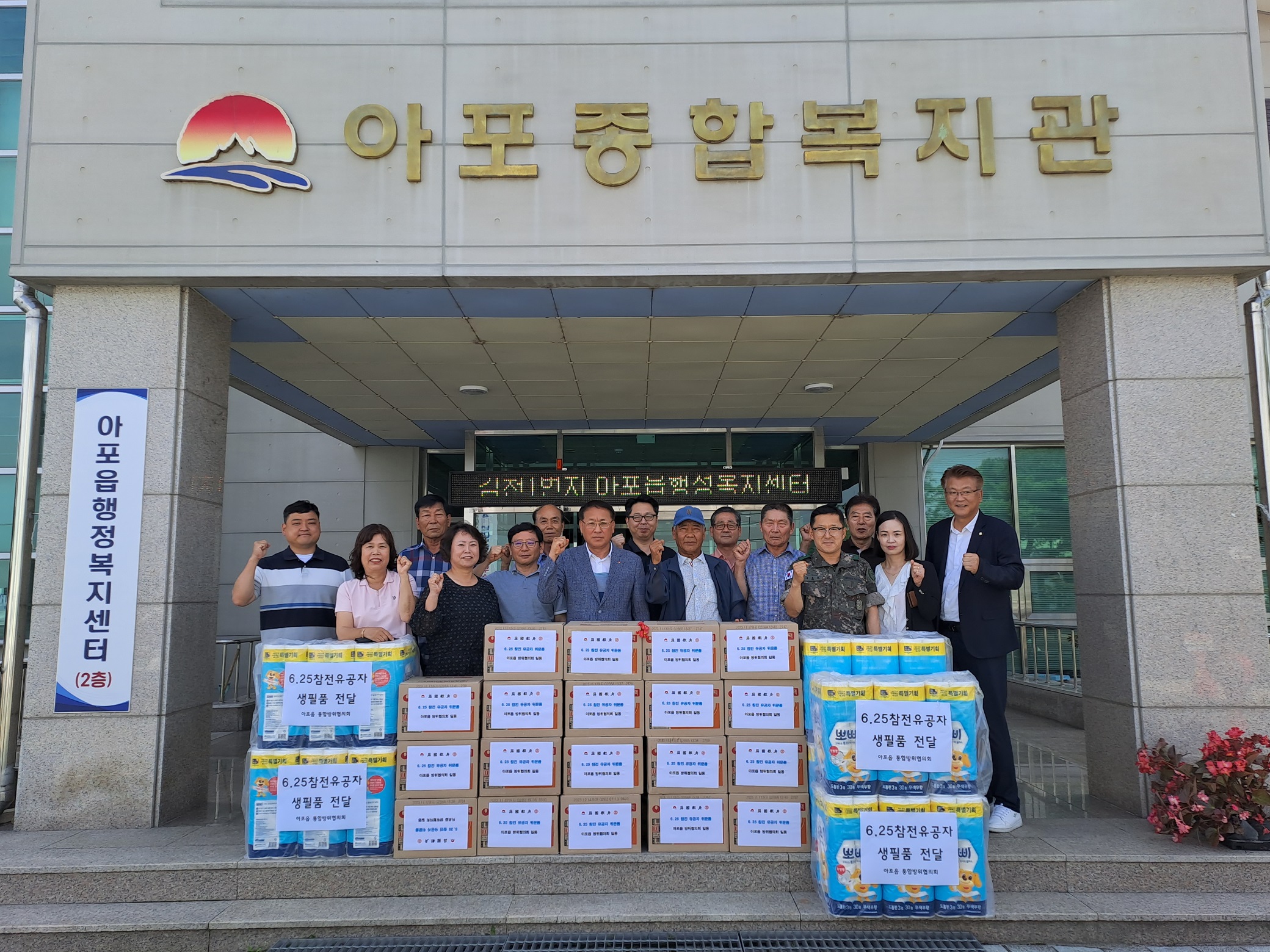 | 김천시 아포읍 방위협의회(회장 정근재) 위원들은 7월 6일에 6.25전쟁 제73주년을 기념하여 관내 참전유공자 가정을 방문하여 휴지, 라면 등 100만 원 상당의 위문품을 전달했다.