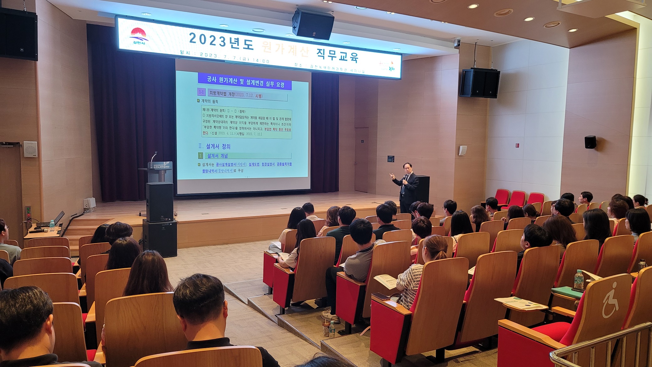 | 김천시(시장 김충섭)는 지난 7월 7일 녹색미래과학관에서 설계 및 계약 담당자 70여 명을 대상으로 원가계산 직무교육을 했다.