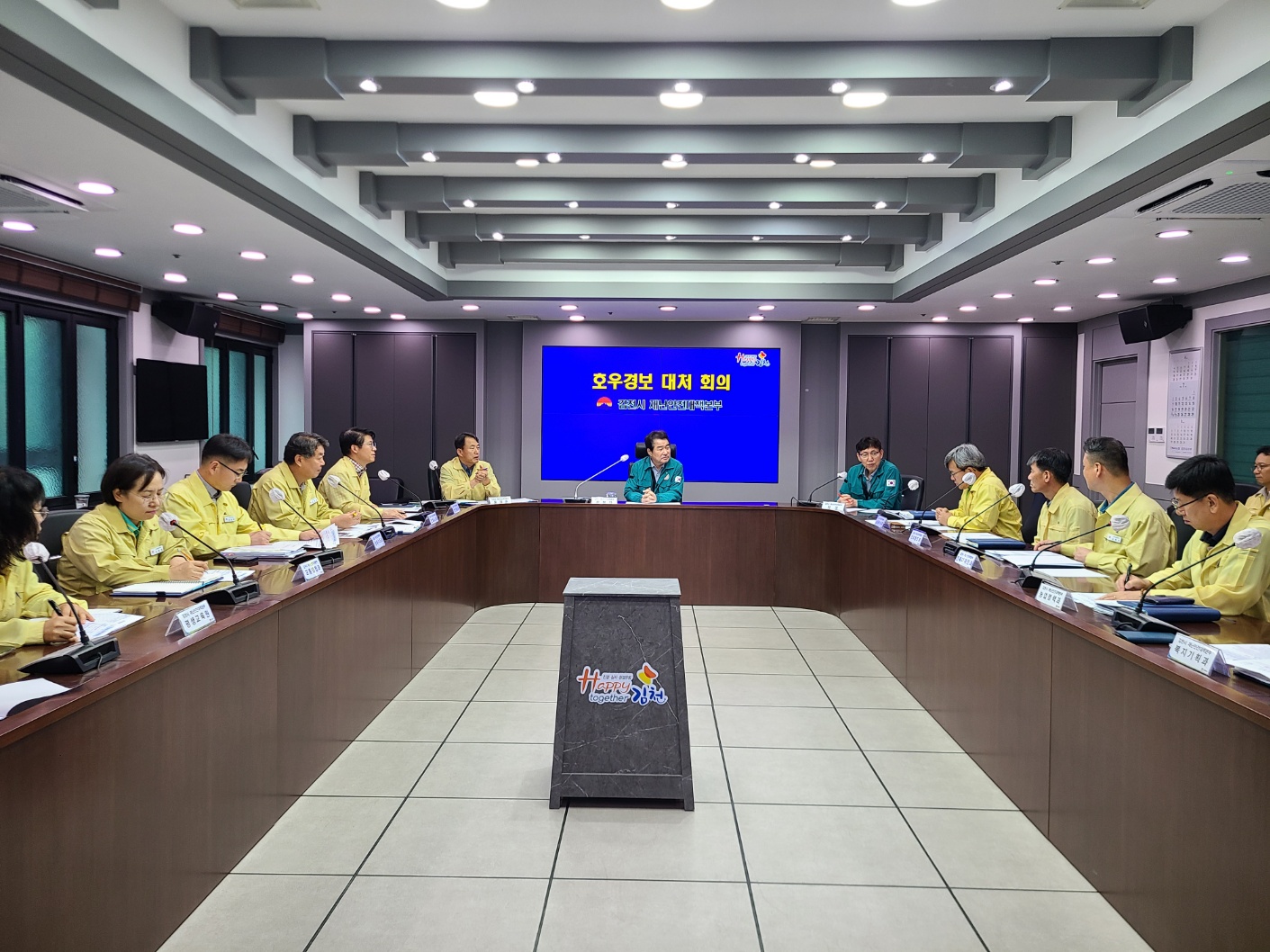 이날 회의에서는 주말 동안 각 부서에서 조치한 산사태 우려 지역 점검, 공동주택 지하 주차장 물막이판 설치, 강가 통제 등 호우 관련 피해 방지 대책을 꼼꼼히 점검했다. 당분간 많은 비가 올 것으로 예상됨에 따라 산사태 취약지역 주민 사전대피, 저지대 배수펌프장 가동, 강가 산책로 통제, 상습 침수 도로 CCTV 실시간 모니터링, 배수로 정비 등 인명피해 방지에 관한 대책을 중점적으로 다뤘다.