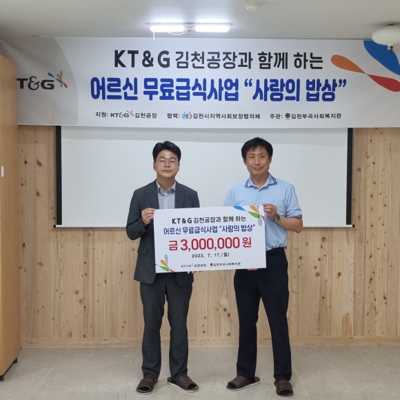 한편, KT&G 김천공장은 사랑의 김장 나누기, 결식아동 급식 지원 등 지역 내 소외계층을 위해 매년 김천시 지역사회보장협의체와 함께 다양한 사회공헌 활동을 펼치고 있다.