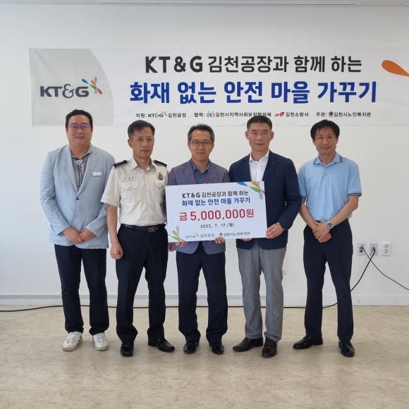 | 김천시(시장 김충섭)는 7월 17일 소외계층의 생활안전과 복지증진을 위해 KT&G 김천공장으로부터 후원금 1,300만 원을 전달받았다고 밝혔다.