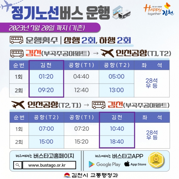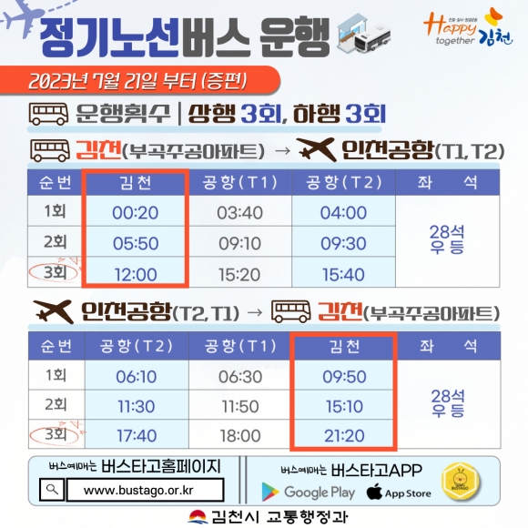 김천 ~ 인천국제공항 정기노선 버스 증편 운행
