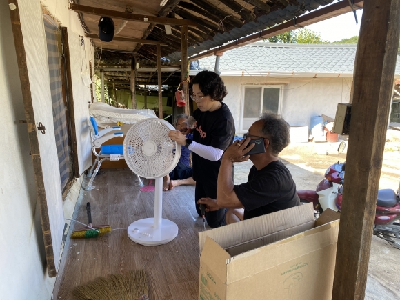 이날 폭염주의보가 발령된 와중에 마을 이장도 함께 선풍기를 직접 대상 가구로 방문 전달하고 조립을 도와주며 안부를 묻는 등 민관이 협동하여 따듯한 마음을 전달하는 훈훈한 장면도 그려졌다.