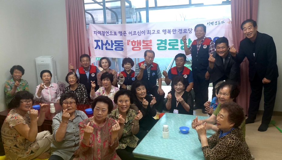 자산동 「행복경로당」은 해피투게더 김천 실천 운동 사업으로 자산동 관내 경로당 7개소와 11개 관변단체가 자매결연을 하여 2022년부터 지속적으로 정기적인 봉사활동을 추진하고 있으며, 관변단체의 정기적인 방문과 적극적인 봉사로 어르신들의 호응이 높다.