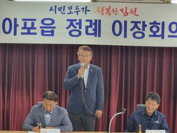 | 김천시 아포읍(읍장 김현인)은 7월 25일 아포농협 2층 회의실에서 아포읍 이장협의회(회장 백성기)와 윤영수 시의원, 성기호 아포농협장, 박대식 아포읍 치안센터장 등이 참석한 가운데 7월 정례 이장 회의를 개최했다.