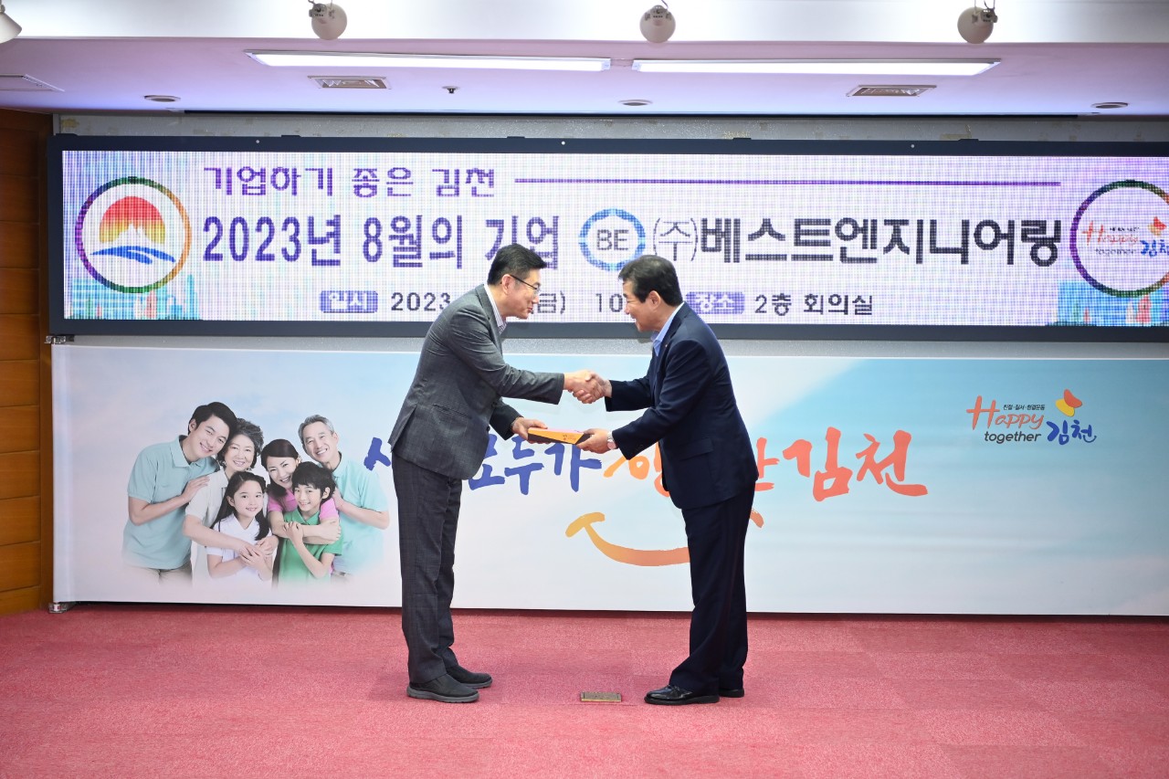 김천시, 8월 이달의 기업 ‘㈜베스트엔지니어링’ 선정