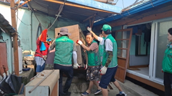 이날 봉사활동에는 지역 시의원(김석조, 김세호)과 새마을남녀협의회 회원 30여 명이 참여하여 생활 집기와 옷장, 장판을 집 밖으로 들어내어 햇볕에 말리고 생활폐기물을 분리수거하는 등 청소에 구슬땀을 흘렸다.