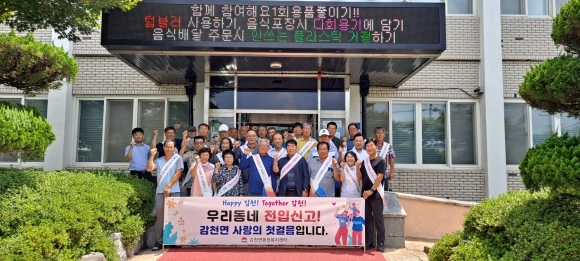 | 감천면 이장 협의회(회장 김교문)는 지난 8월 1일 이장 협의회 14명이 참석한 가운데 감천면 행정복지센터 2층 회의실에서 정기회의 후 감천면 바르게살기협의회(회장 오명석)와 함께 인구 증가 캠페인을 벌였다.
