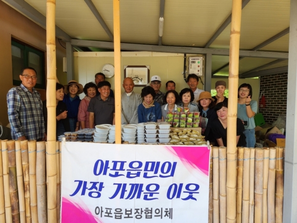 | 아포읍 지역사회보장협의체(위원장 박석현)는 지난 8월 5일 박석현 위원장을 비롯한 위원들이 함께 참여하여 정성껏 준비한 밑반찬과 말복을 앞두고 아포읍 봉산리 소재 삼일암에서 기부한 닭으로 직접 만든 삼계탕을 관내 독거노인 30세대에 전달했다.