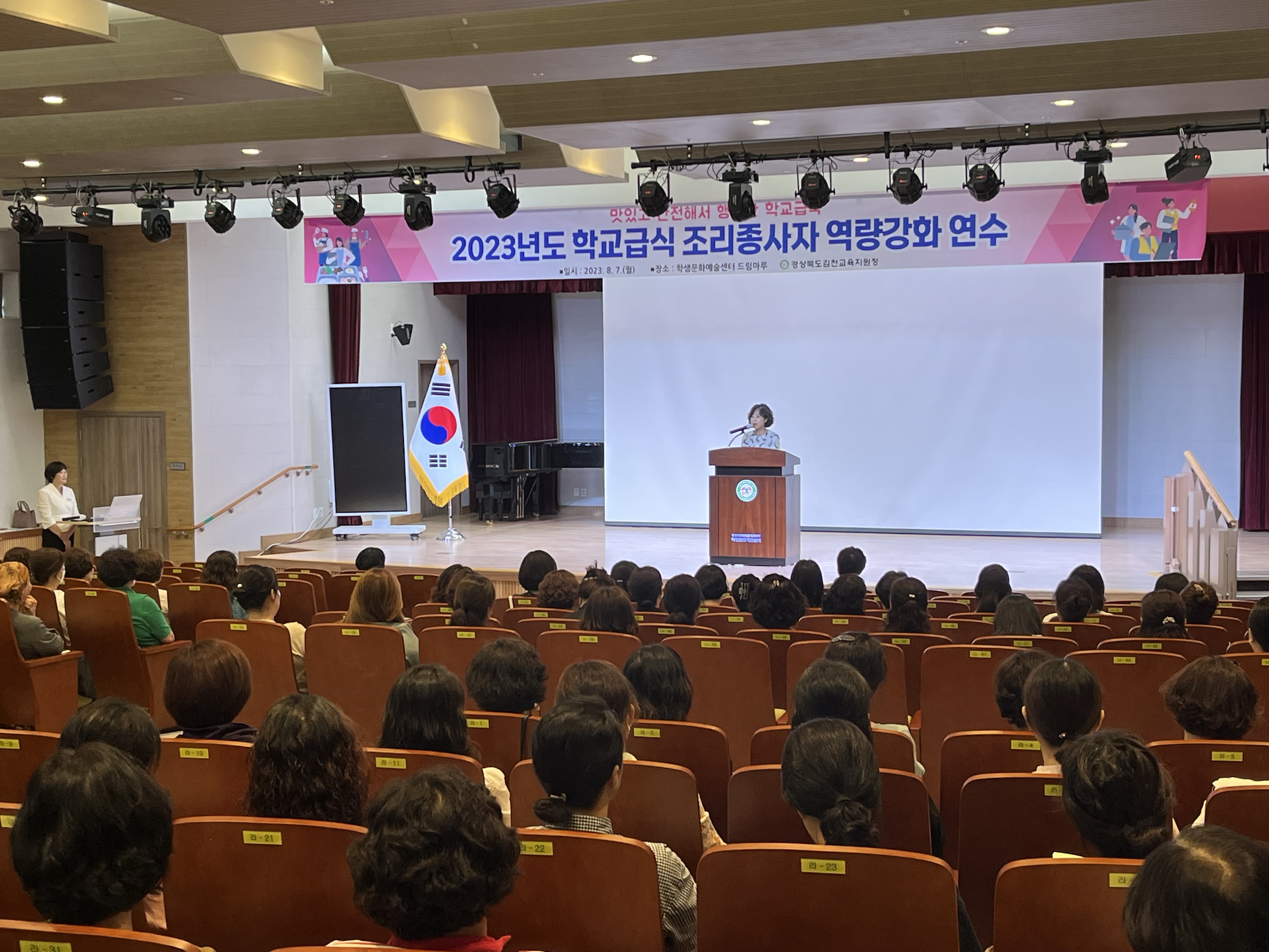 | 경상북도김천교육지원청(교육장 공현주)은 8월 7일 김천시 학생문화예술센터 드림마루에서 지역 내 유·초·중·고·각종학교 조리종사자 250여 명을 대상으로 역량강화 연수를 실시하였다.