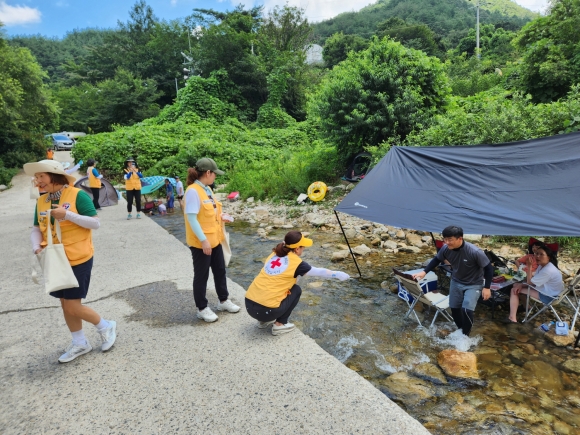 김천시종합자원봉사센터, 피서객 물놀이 안전 합동캠페인