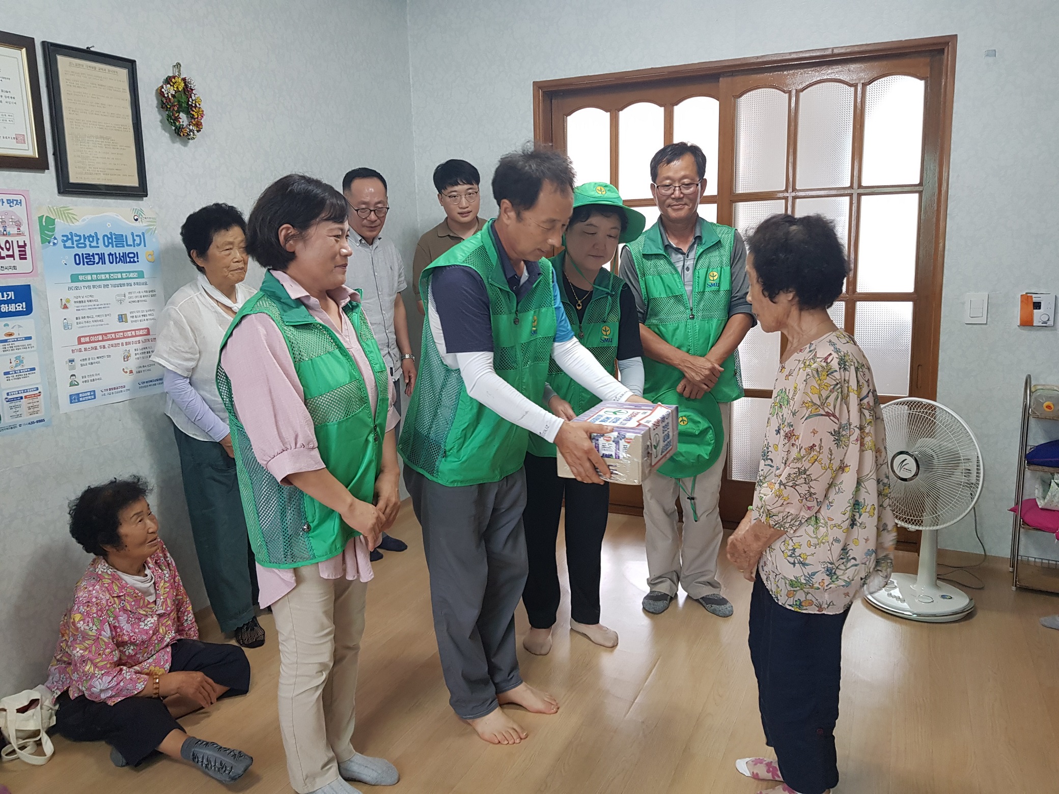 새마을협의회 박종화, 지운선 회장은 “바쁜 일정에도 시간을 내어 효 사랑을 실천하는 새마을협의회 회원 여러분께 감사를 드리며, 정성껏 준비한 위문 물품이 어르신들께서 무더위를 이기는 데 도움이 되었으면 좋겠다.”라고 말했다.