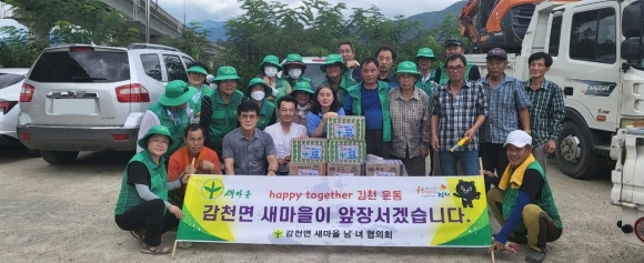 | 감천면(면장 김상철)에서는 8월 8일에 감천면 새마을남녀협의회(회장 박종화, 부녀회장 지운선) 회원들과 함께 다가오는 말복을 맞이하여 효 사랑 실천으로 관내 경로당 19개소를 방문하여 어르신들께 건강음료를 전달했다. 이날 회원들은 새마을남녀협의회의 자체 경비로 사전 조사한 위문 물품(건강음료)을 준비하고, 마을 어르신들의 건강과 장수를 기원하는 마음을 담아 경로당을 방문해 어르신들과 담소를 나누며 즐거운 시간을 함께했다.