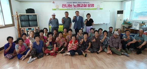 | 아포읍(읍장 김현인)에서는 8월 11일 아포읍 지1리 경로당에서 2023년 행복이 가득한 마을학습관 운영으로 「신나는 노래교실」 개강식을 개최했다.