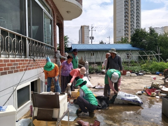 | 지난 8월 12일 농소면 새마을남녀지도자협의회(회장 이상백, 부녀회장 박성자)는 제6호 태풍 ‘카눈’으로 침수 피해를 본 월곡2리 (용시)마을에서 피해 가구 복구를 위한 환경정비 봉사활동을 했다.