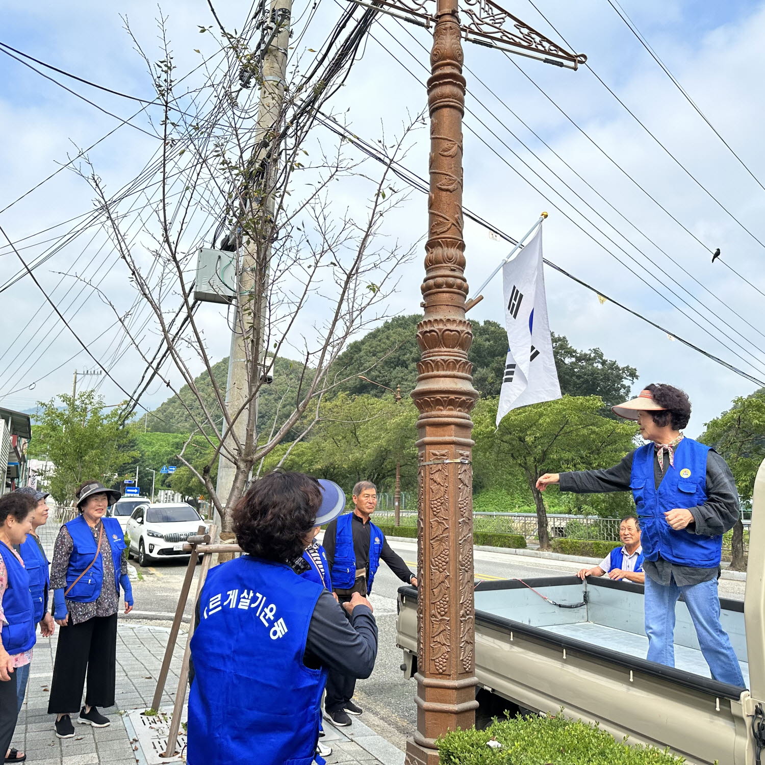 이날 회원들은 대항면 관내 주요 도로변에 태극기 게양을 추진하며 주민들에게 나라 사랑의 마음을 고취시켰다.