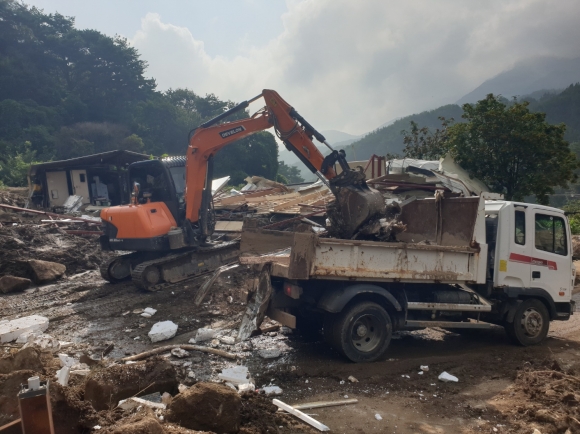 김천시 새마을 남녀지도자, 증산면 황점리 태풍 카눈 피해복구 지원