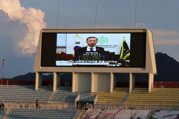 김천 상무 FC 축기 경기장 대형 전광판 활용, 마약예방 홍보