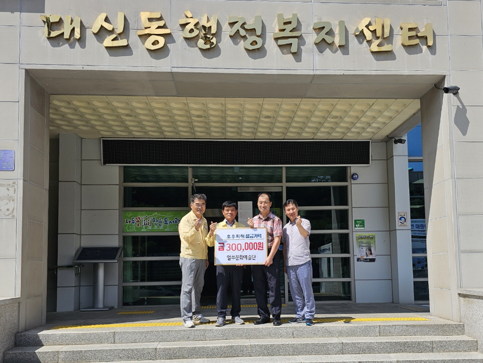 | 지난 8월 21일 얼쑤문화예술봉사단(단장 김선규)은 집중호우 및 태풍으로 피해를 본 분들에게 써달라며 수재의연금 30만 원을 기탁했다.