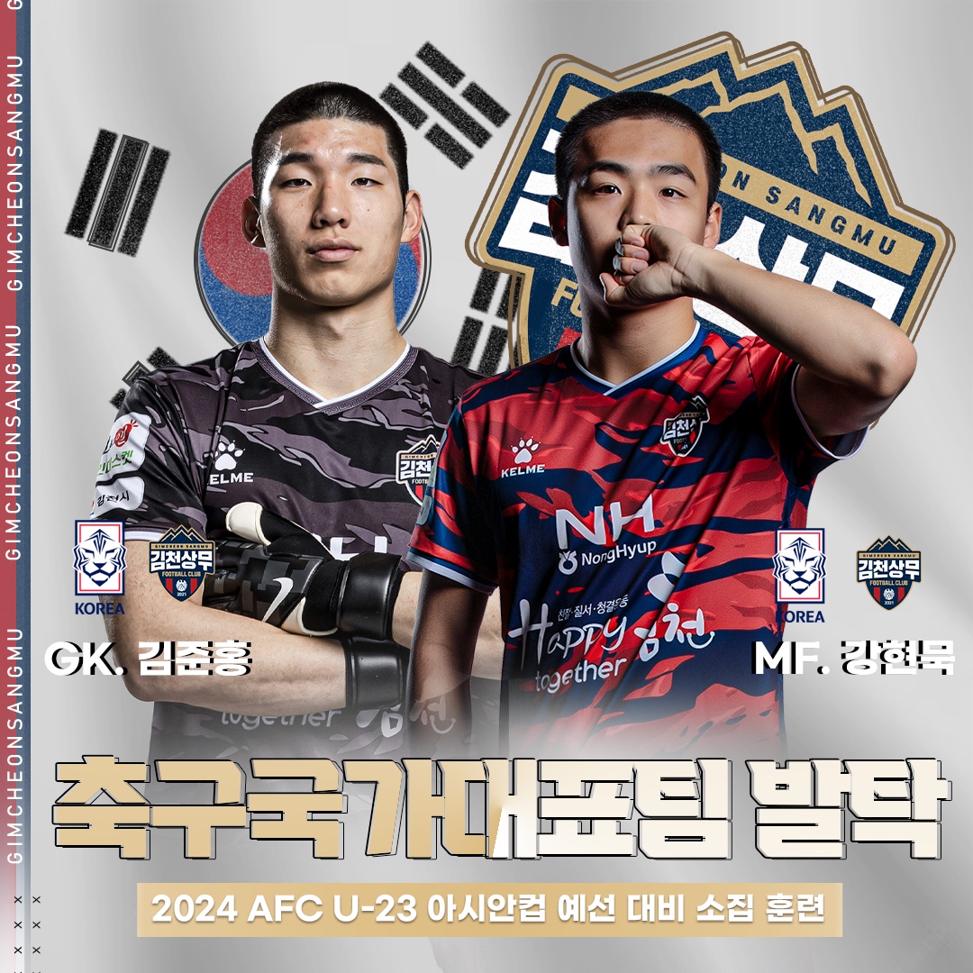 지난 8월 22일 대한축구협회가 ‘2024 AFC U23 아시안컵 예선 대비 소집 훈련’에 참가하는 올림픽 대표팀 명단을 발표했다. 김천상무에서는 강현묵(MF), 김준홍(GK)이 이름을 올렸다. 이번 소집은 8월 28일부터 9월 3일까지 창원에서 진행된다. 소집 훈련 이후 아시안컵 예선에 참가할 최종 명단이 추려질 예정이다.