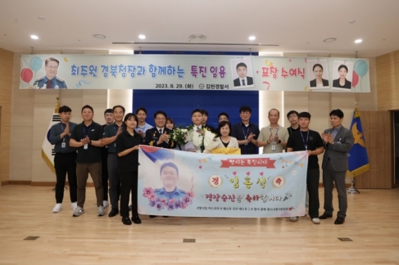 |  | | | ⓒ 김천내일신문 | | 경북경찰청(청장 최주원)은 지난8월29일 김천경찰서에서 ’23년 3차 수시특진 임용식 및 성과 우수 직원에 대한 표창 수여식을 개최하였다. 이번에 수시특진의 영예를 안은 대상자는 김천경찰서 형사팀 임홍식 순경으로 임순경은 김천‧의성 일대를 배회하며 8회에 걸쳐 주택 등에 침입하여 차량‧낚시용품 등 2,500만 원 상당의 재물을 절취한 피의자를 검거(구속)한 유공이다. 특히 임순경은 출소 후 1개월도 되지 않는 짧은 기간에 무려 8회의 범행을 한 피의자를 끈질긴 수사 끝에 신속히 검거한 것은 물론, 피해품도 대부분 회수(2,300만원 상당)하였다. 표창 대상자인 김천서 외사계 경장 정지예는 범죄예방교육 및 외국인자율방범대 활동 등 다양한 다문화 치안활동을 펼치고, 우수한 외사첩보 실적 유공으로 베스트 외사경찰로 선정되었으며, 김천서 형사팀 순경 김미진은 경북‧대구 등지에서 주차된 차량 문을 열고 들어가 24회에 걸쳐 현금‧휴대폰 등 2,450만 원 상당의 금품을 절취한 피의자를 검거(구속)한 유공이다. 최주원 청장은 “특진을 한 임홍식 순경과 표창을 받은 정지예 경장, 김미진 순경에게 진심으로 축하의 말씀을 전하며, 오늘의 영광이 있기까지 함께 한 동료와 가족 등 주변의 도움을 잊지 말고 국민중심 책임수사 실현과 외사경찰의 발전에 더 노력해 줄 것”을 당부했다. 수시특진은 경북경찰청이 치안현장에 활력을 불어넣기 위해 매월 중요사건 검거 유공자를 선정·시상하는 제도로 올해 들어 4명이 특진하였으며, 베스트 외사경찰은 매년 상·하반기 각 2명씩 도내에서 업무실적이 우수한 외사경찰을 선발·포상하는 제도로, 이를 통해 업무 전문성 향상을 제고하고 주요 외사정책의 추진동력을 확보해 나갈 예정이다. |  | | | ⓒ 김천내일신문 | | |