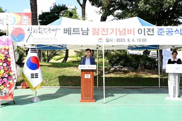 시는 지난 9월 4일 오후 3시 신음동 조각공원 내에서 홍성구 김천 부시장, 이명기 김천시의회 의장 및 시의원, 이우청, 최병근 경상북도의회 의원, 김현조 베트남참전자회 김천시지회장을 비롯한 보훈 단체장 및 회원 등 150여 명이 참석한 가운데 기념비 이전 준공식을 했다. 이날 행사는 국민의례, 경과보고, 기념사, 내빈 축사 및 제막식 순으로 진행됐다.