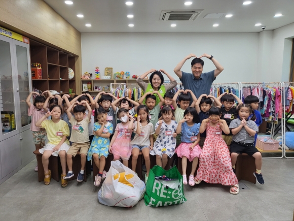| 김천시 율곡동 행정복지센터(동장 김종현)는 지난 9월 4일 농소유치원 7세 어린이 2개 반 50여 명이 율곡 상점에 방문하여 가정에서 더 이상 사용하지 않는 유아 물품들을 모아 전달했다고 밝혔다.