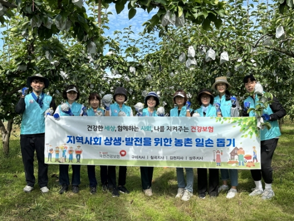 이날 일손돕기는 상주시 낙동면 지역사회 배 농가에 직원 12여명이 직접 참여하여 농촌 인구 고령화로 인하여 일손부족으로 어려움을 겪는 농가들에 직접 재배·생산하는 농산물을 참여 직원들이 수확·포장까지 담당하여 부족한 일손을 지원하고 농업인들과 소통하며, 건강보험제도 현장의 소리를 청취하는 시간을 가졌다. 또한, 지역에서 생산되는 특산물 홍보와 일손 돕기에 참여한 직원이 80박스 농산물을 현장에서 구매하여 지역사회와 상생·협력을 통한 ESG경영실현에 동참하였다.