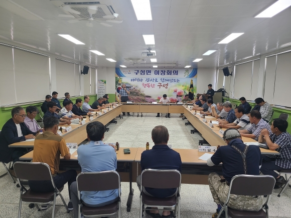 김동진 구성면장은 “올 한해도 어느덧 하반기로 접어들어 추석 명절을 앞두고 있다. 명절에 우리 구성면을 찾는 지역민들에게 깨끗한 고향 이미지를 심어줄 수 있도록 이장님들이 솔선수범하여 마을 청결에 힘써주시길 바란다. 면에서도 연도 변 풀베기, 쓰레기 수거 등 청결한 마을 이미지를 위해 최선의 노력을 다하겠다.”라고 말했다.