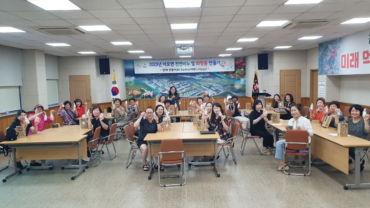 「함께 만들어요! EoMo(어모) class!」는 EM원액을 활용하여 세제 등 친환경제품을 만들어 환경보호의 필요성을 널리 알리고 실천하고자 추진한 것으로, 이날 교육에는 어모면 생활개선회 회원들이 함께해 EM의 원리와 효과에 대해 알아보고 실생활에서 EM원액을 활용할 수 있도록 친환경 세제를 만들어 보는 시간을 가졌다.