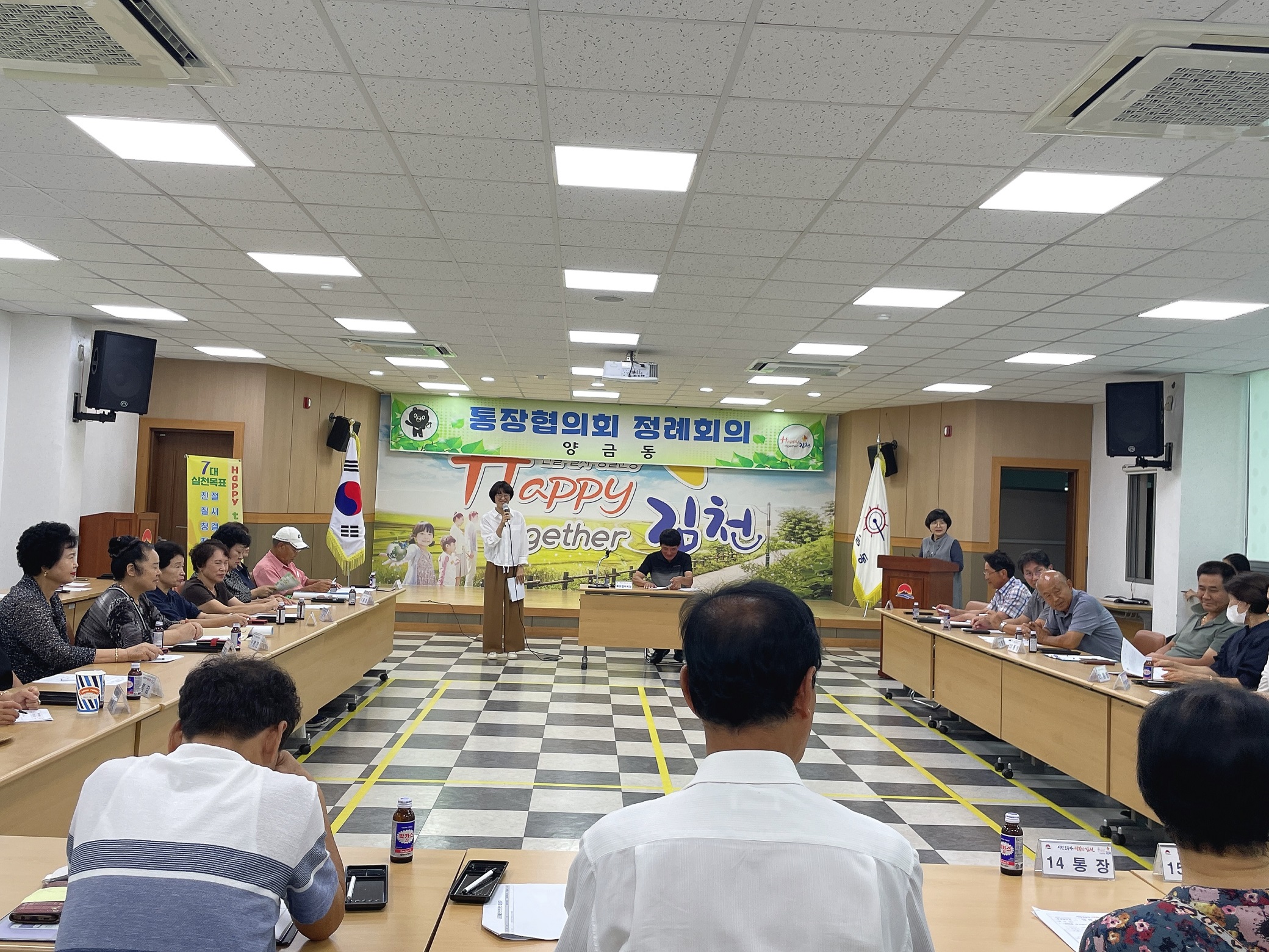 | 양금동 통장협의회(회장 정호동)는 지난 9월 9일 양금동 행정복지센터에서 9월 월례 회의를 개최했다.