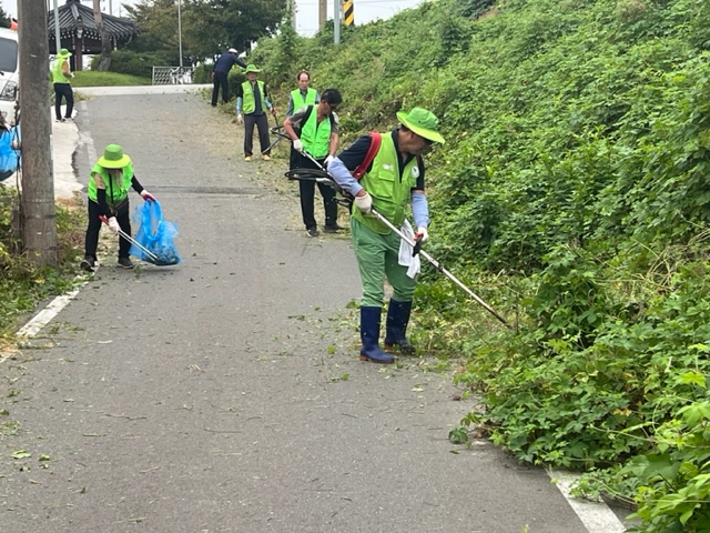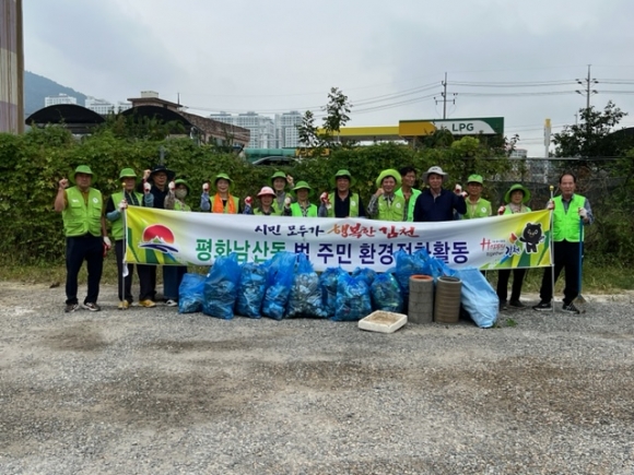 이번 활동은 다가오는 추석을 맞아 예초기 등의 장비를 동원해 평화동 80번지 일대의 잡초와 넝쿨을 제거하고, 연도변에 버려져 있는 각종 쓰레기를 수거하는 환경정화활동을 같이 시행했다.