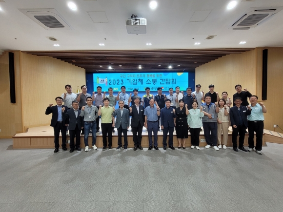 | 김천시는 지난 9월 19일 시청 3층 강당에서 경제관광국장 주재로 관내 제조업체 구인난 해소 방안을 논의하고 해결책을 모색하기 위한 2023 기업체 소통 간담회를 개최했다. 이번 간담회는 관내 20개 기업체 대표와 인사담당자가 참석했으며 김천시 일자리경제과, 투자유치과, 교통행정과와 취업 관계기관인 김천고용복지센터, 김천상공회의소, 김천시 취업 지원센터 관계자가 참석한 가운데 진행되었다.
