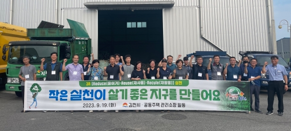 | 김천시는 9월 19일 관내 공동주택 관리소장 20여 명을 대상으로 환경보전의 필수 시설인 소각시설, 하수처리시설, 재활용선별장 등을 견학하고 환경 전문 강사를 초빙하여 자원순환 교육을 진행했다. 이번 견학과 교육은 지역에서 운영되고 있는 자원 순환시설을 직접 보고 느끼면서 자원순환에 대한 올바른 정보를 배우고 쓰레기 감량과 재활용품 분리배출의 중요성을 다시 한번 인식하고 공감하기 위해 마련됐다.