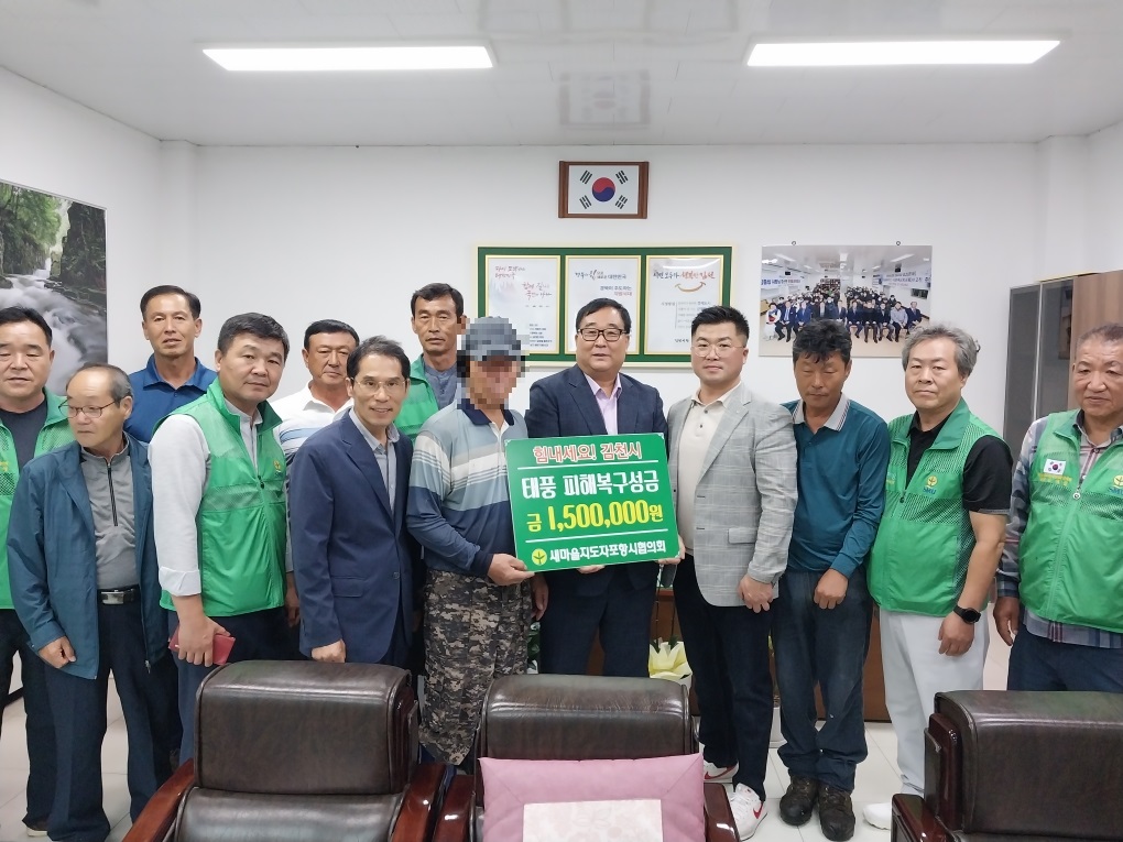 | 새마을지도자 포항시 협의회(회장 심정섭)에서는 지난 제6호 태풍 카눈으로 산사태 피해를 보아 어려움을 겪고 있는 김천시 증산면 초동마을 이재민을 찾아 성금 150만 원을 맡기었다.