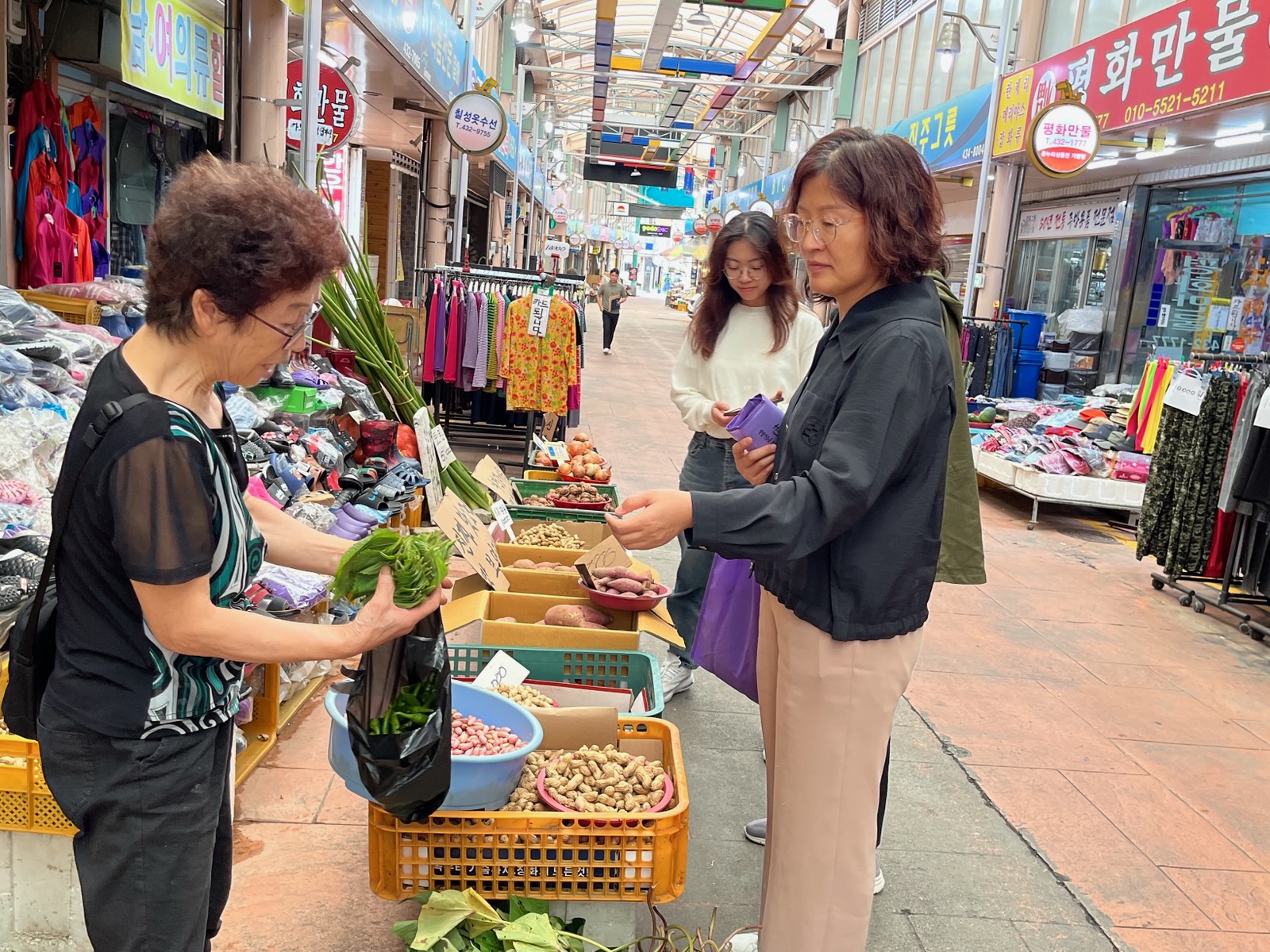 적십자봉사회 회원들과 지좌동 행정복지센터 직원이 20일, 21일 이틀에 걸쳐 평화시장을 방문하여 장보기를 진행했다. 각종 음식과 제사용품 등 필요한 농산물을 김천사랑 상품권을 이용하여 알뜰하게 구매하며 지역경제 활성화에 이바지하는 계기가 되었다.