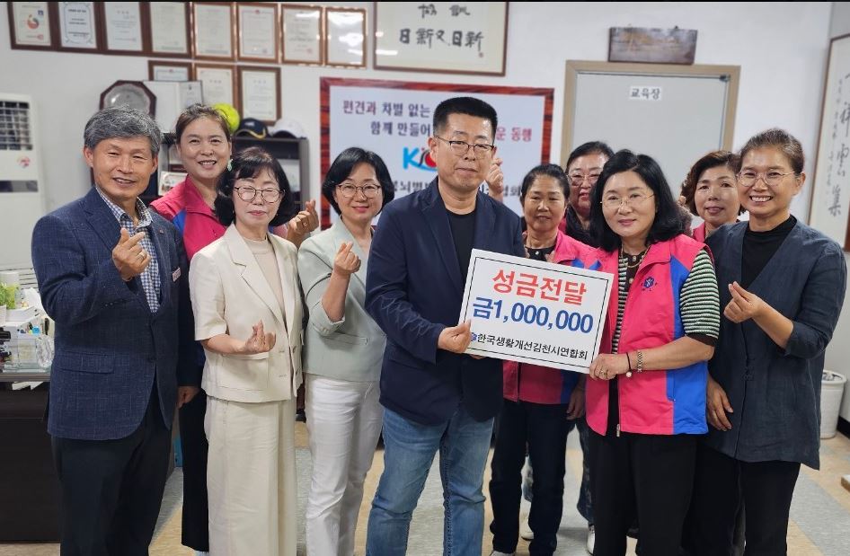 성금을 전달한 한국생활개선 김천시연합회 임소록 회장은 “도움의 손길이 필요한 뇌병변협회 회원들에게 조금이나마 힘이 되고 싶다”라며 “생활개선회 회원들의 작은 정성이 따뜻한 공동체를 만드는데 작은 밑거름이 되었으면 좋겠다”라고 말했다.