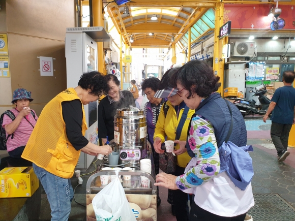이번 추석명절을 앞둔 9월 25일에는 황악하모니카예술단(단장 이규홍), 대한적십자사봉사회 김천지구협의회(회장 배진옥)와 김천유권자연맹봉사단(회장 김삼선)에서 추석명절맞이를 위해 황금시장과 평화시장을 찾는 시민과 방문객에게 따뜻한 마음을 담은 커피와 행복을 실은 음악으로 전통시장의 활력과 명절분위기를 북돋아 주는 시간을 가졌다.