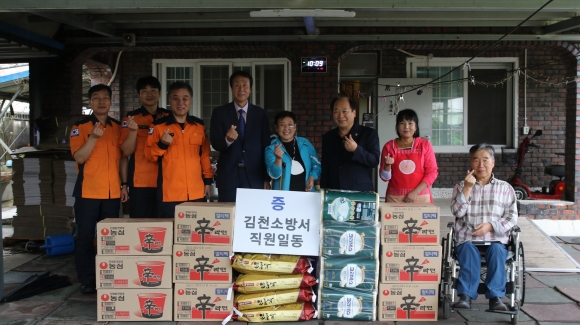| 김천소방서는 9월 26일 민족 명절인 추석을 맞아 전우현 김천소방서장 등 소속 직원들과 이우청·박선하 도의원이 함께 사회복지시설을 방문해 따뜻한 마음을 전했다고 밝혔다.