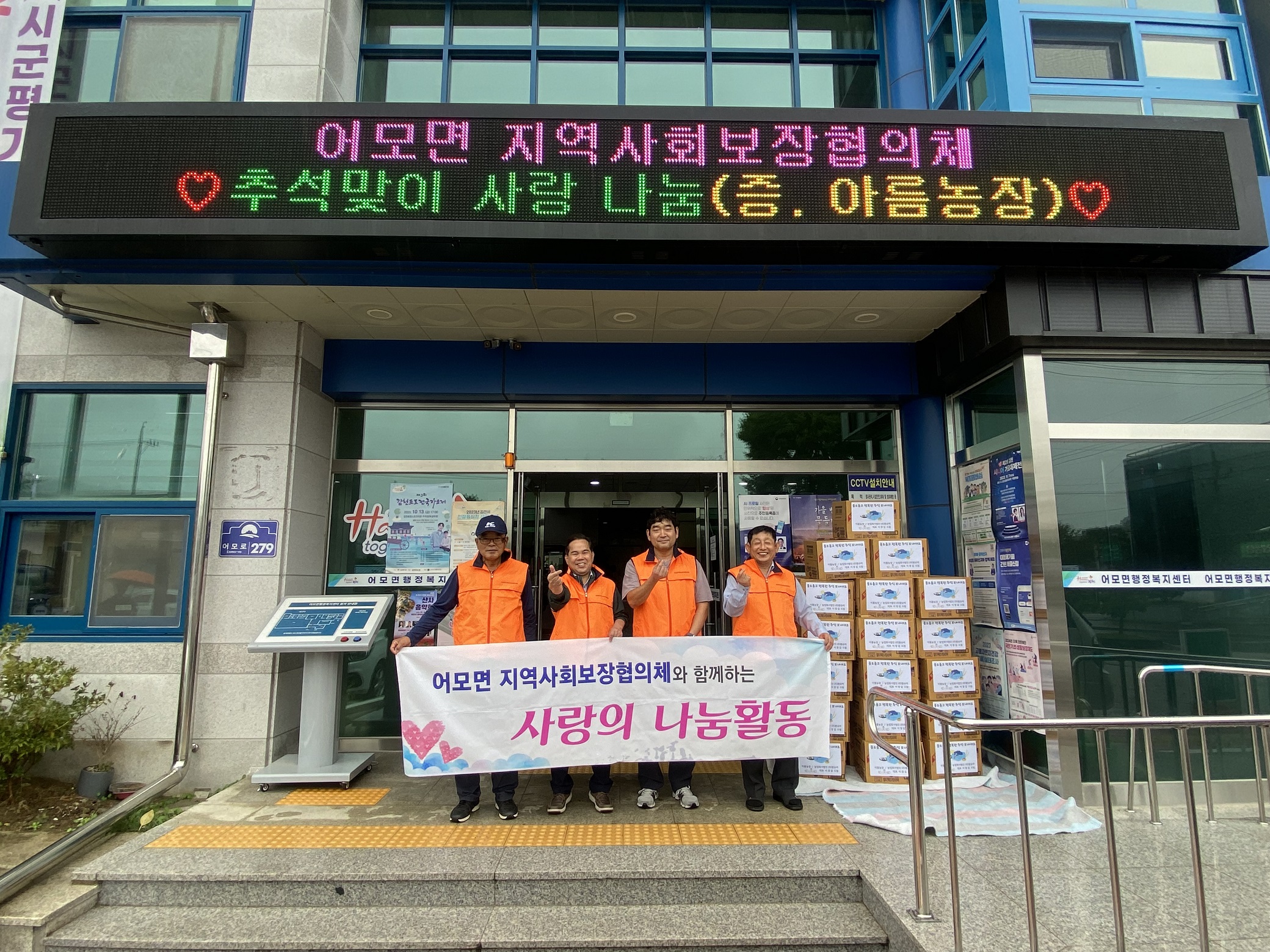 이영원 위원장은 “올해도 추석 명절을 맞이하여 아름 농장에서 후원 물품을 맡겨 준 덕분에 우리 이웃들이 따듯하고 풍성한 추석 명절을 보낼 수 있을 것 같아 든든하다.”라며 “앞으로도 지역사회보장협의체가 우리 주변의 어려운 이웃을 위해 앞장서겠다.”라고 밝혔다.