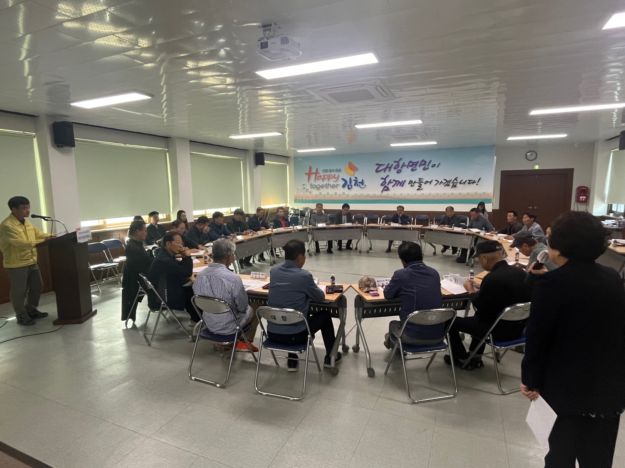 | 김천시 대항면 행정복지센터는 10월 6일 면 행정복지센터 2층 회의실에서 이장 24명과 기관장이 참석한 가운데 10월 정례 이장 회의를 개최했다.