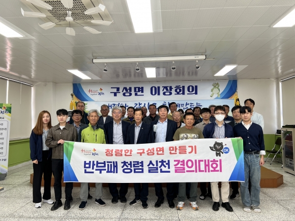 자체 회의 후에는 구성면 직원들과 이장들이 함께 청렴한 구성면을 만들기 위한 다짐으로 “반부패·청렴 실천 결의대회”를 개최했다.