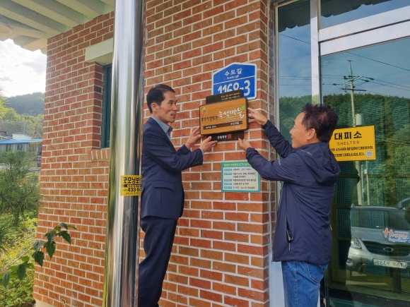 | 김천시 증산면 수도마을(이장 윤기홍)이‘2023년 소각산불 없는 녹색마을’로 선정되어 지난 10월 6일 수도리 마을회관에서 현판 수여식을 가졌다.